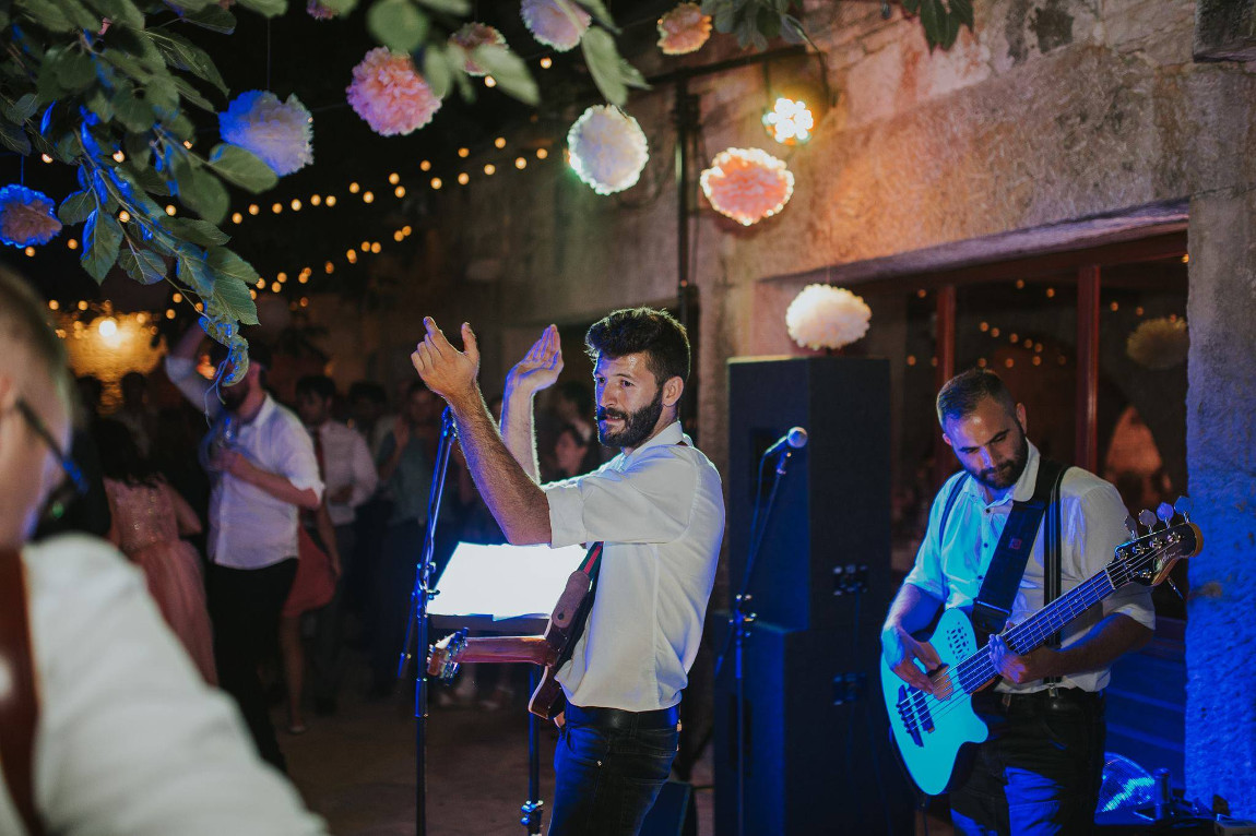 LIVE BAND Bend za vjenčanja se sastoji od pet školovanih glazbenika koji pokrivaju i najzahtjevnije stilove glazbe. Instrumente koje koristimo na vjenčanju su : Akustične i klasične gitare, bas gitara, bubnjevi i perkusije, klavir, violina i harmonika.